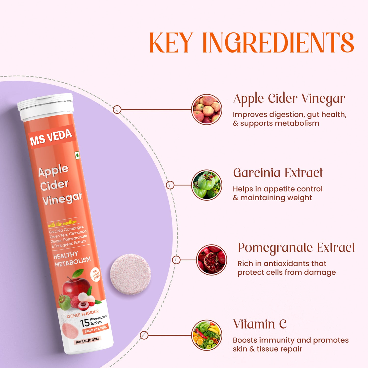 Apple Cider Vinegar Tablets with Lychee Flavored for Weight Management