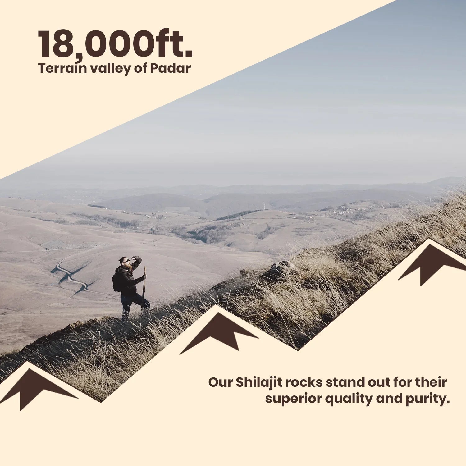 We bring you the most effective Healvito Shilajit, sourced from the pristine Gilgit Mountains at 18,000 feet. Untouched by human activity and enriched by mineral-rich, ancient soils, it is processed using the traditional Vedic Suryatapi method, ensuring it retains its natural potency and nutritional density. This meticulous process preserves its bioactive compounds, making it a highly effective and pure source of energy and vitality.